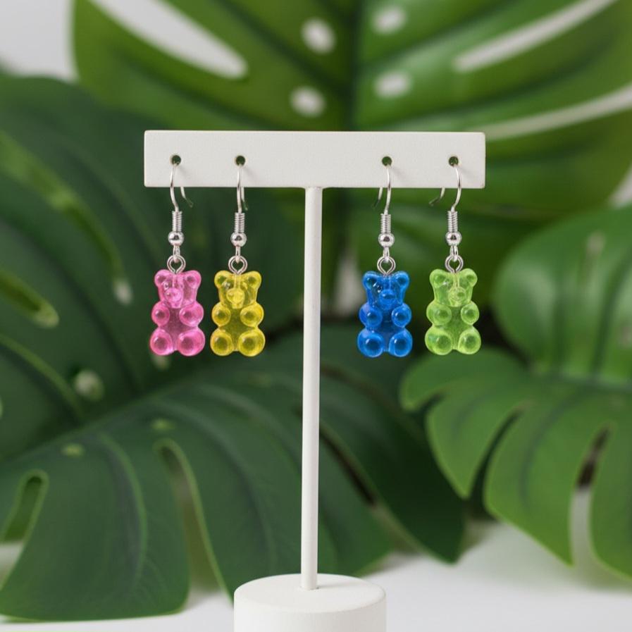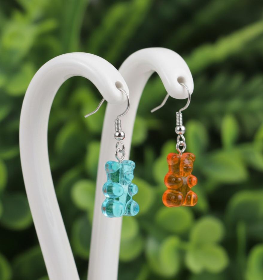 Cute and unique gummy bear earrings with a silver earring hook.Colour options BlueLight bluePinkOrangeGreen