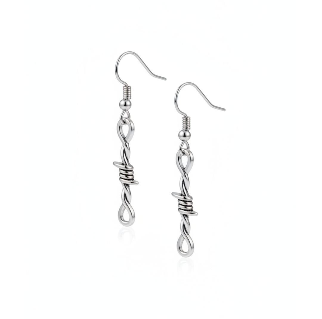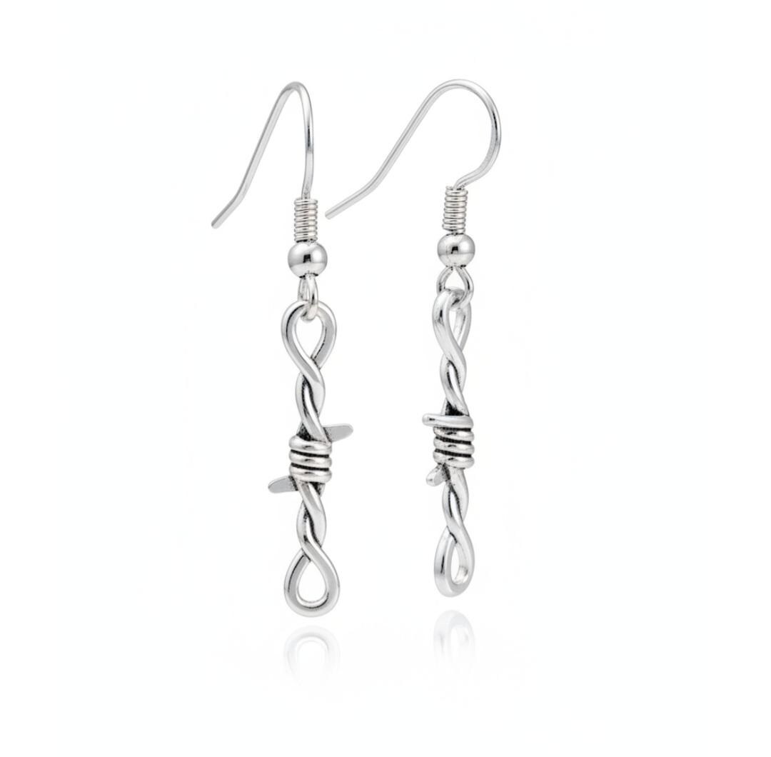 Gothic style barbed wired earrings with 925 sterling silver earring hoops. Coming into stock early 2026 pre orders taken now