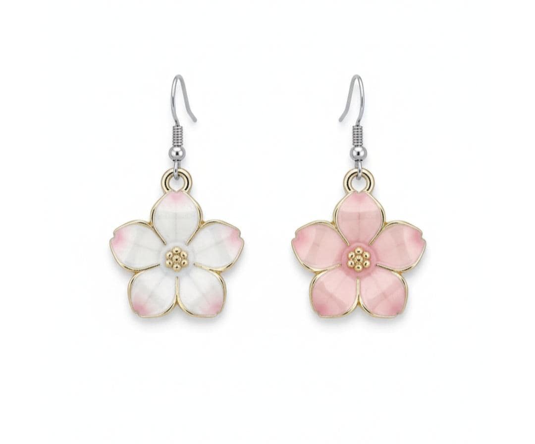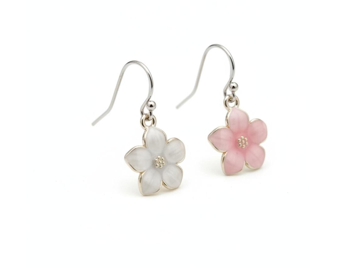 Ennamel sakura style flower earrings with 925 sterling silver earring hoops. Coming into stock early 2026 pre orders taken now