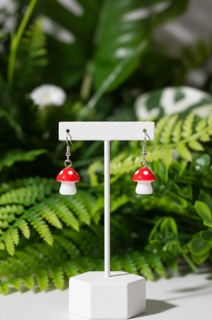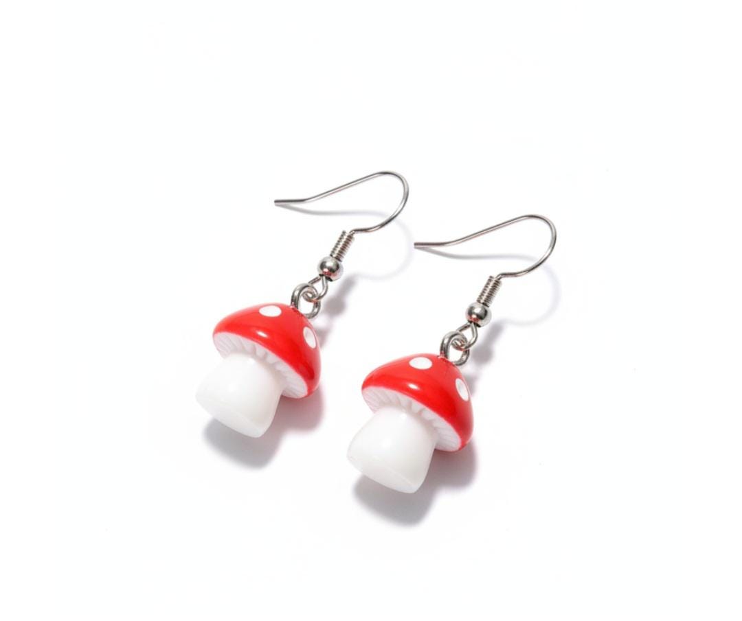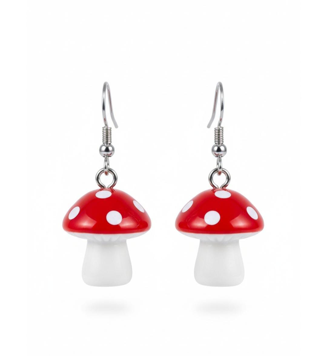 Cute fair inspired red cap mushroom earrings with 925 sterling silver earring hoops. Coming into stock early 2026 pre orders taken now
