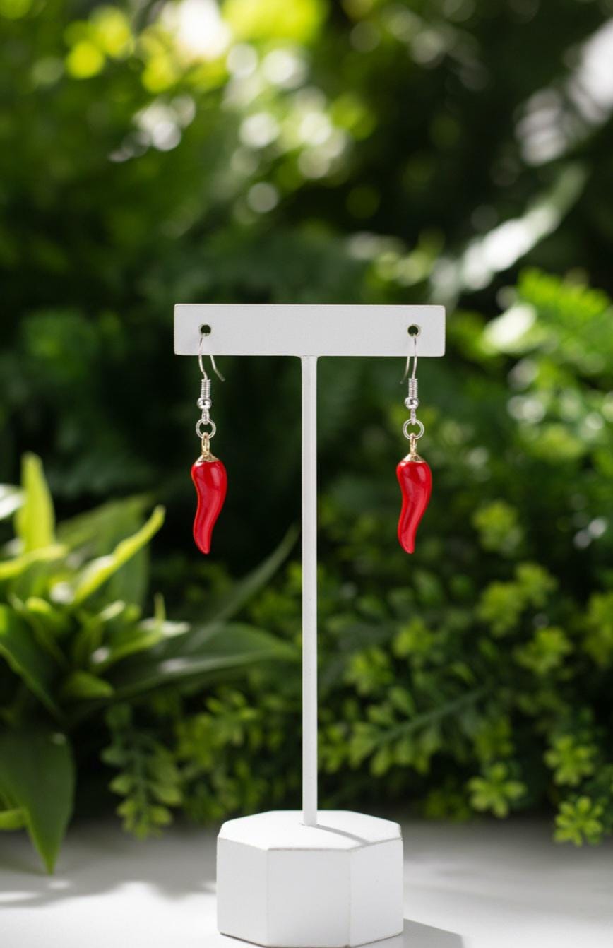 Red chilli earrings with 925 sterling silver earring hoops. Coming into stock early 2026 pre orders taken now