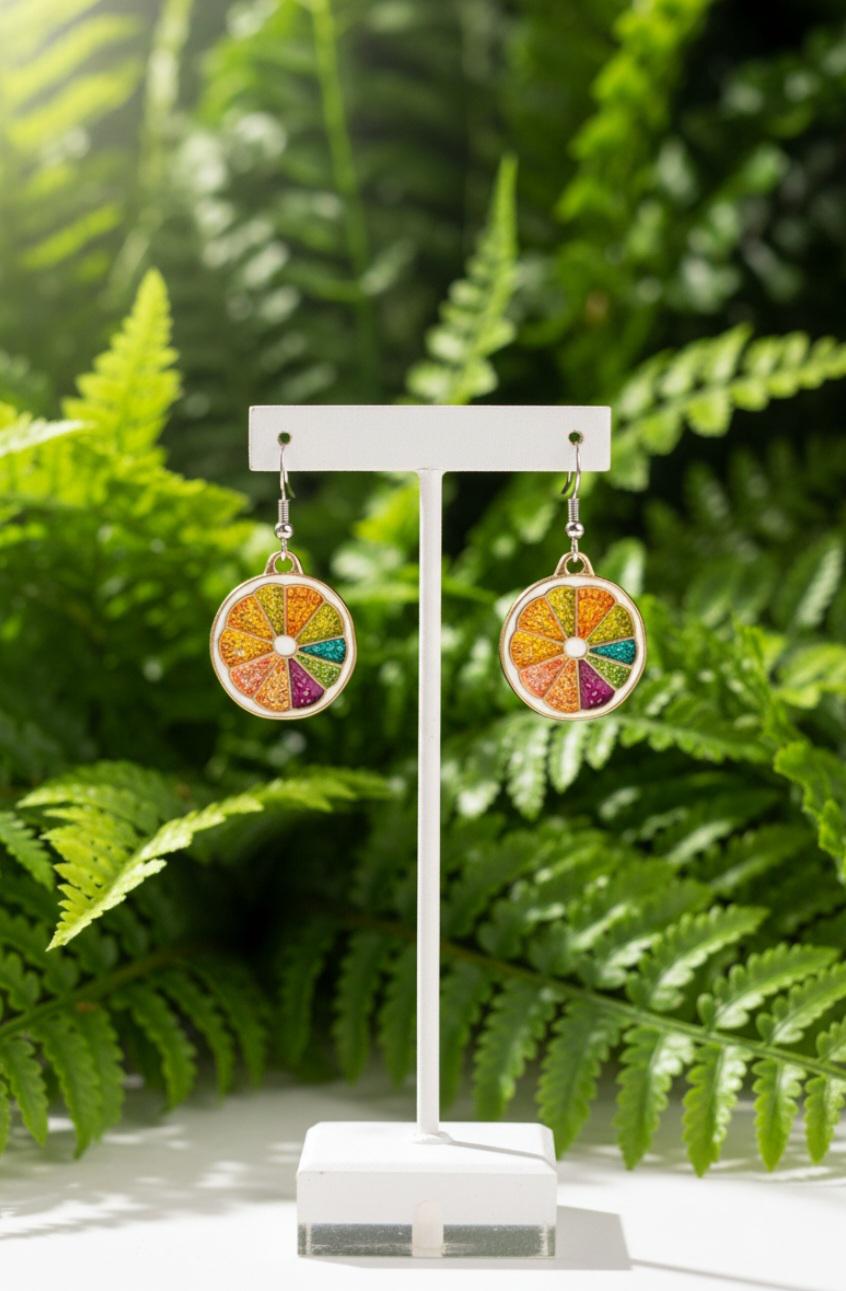 Summer multi coloured resin orange slice earrings with 925 sterling silver earring hoops. Coming into stock early 2026 pre orders taken now