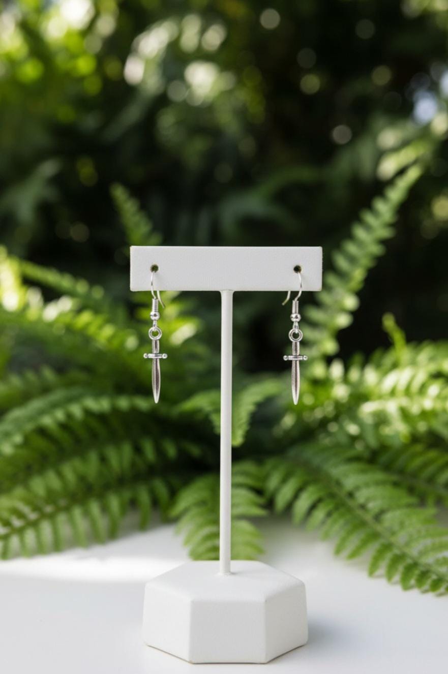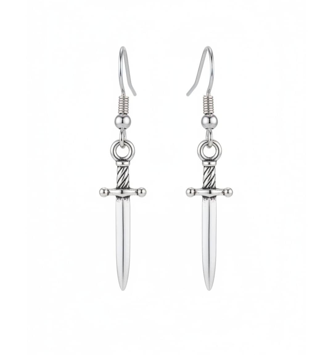 Goth inspired simple dagger earrings with 925 sterling silver earring hoops.