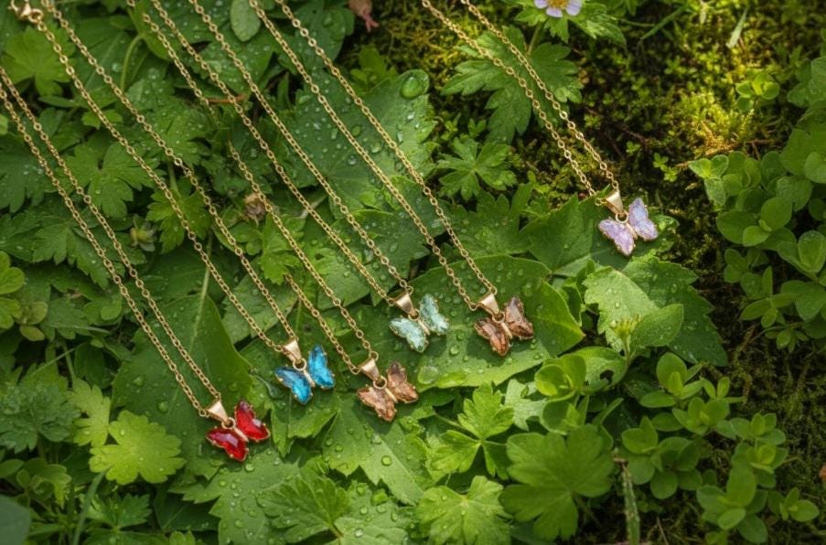 1pc butterfly charm necklacecomes in multiple colours add in the personalisation which colour. Be aware some colours may not be available
